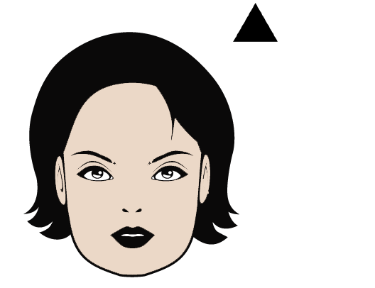 A triangle face shape is widest and the jaw and gradually gets narrower through to the forehead. To balance a broad chin, choose frames that widen at the top. Ideal selections are those that have detailing on the upper part of the frames. For example, cat-eye shapes are great because they add width and emphasize the narrow upper part of the face.